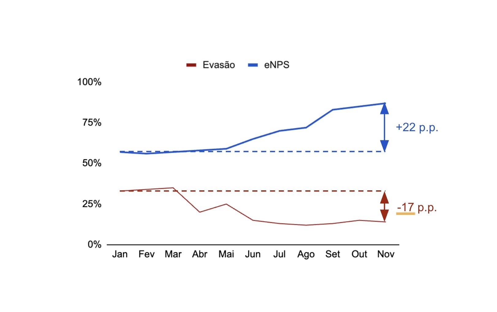 Os dados permitem acompanhar o impacto real das mudanças implementadas em gestão, cultura e reconhecimento.